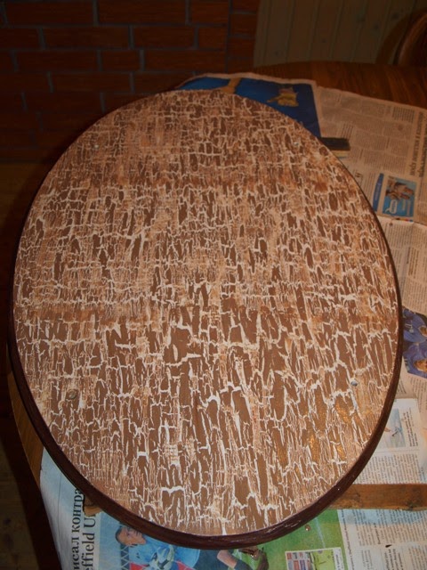 Järgmine töö oli kohvilaua alumise riiuli üle katmine krakleega.